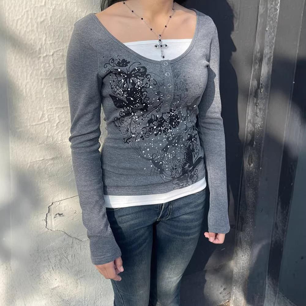 2026 Europäisches Y2K Damen Slim Gestreiftes Langarm Retro Top - Hot Girl Mode — günstig online bei Joom kaufen