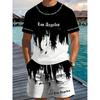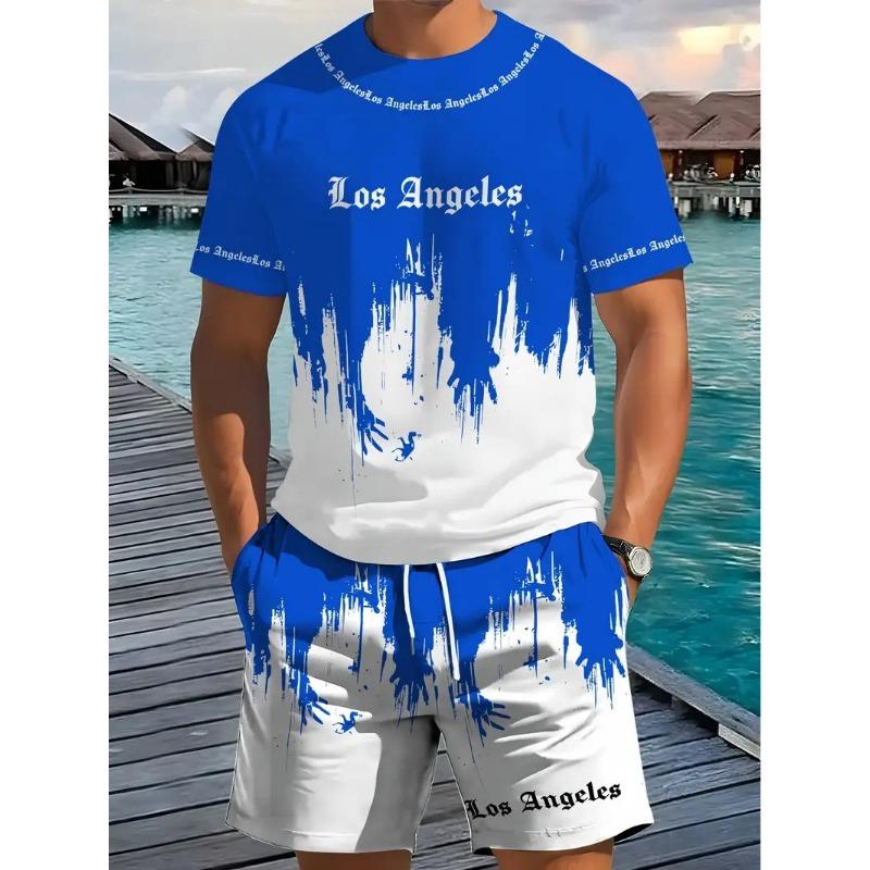 The summer new men's shorts + T-shirt set with 3D gradient printing is fashionable casual sporty comfortable and breathable