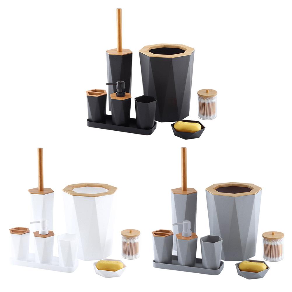 8Pcs Bathroom Set with Cup Holder Dish Dispenser Bin Brush Bathroom Accessories Set - Soap Dish Dispenser Trash Can Toilet Brush — günstig online bei Joom kaufen