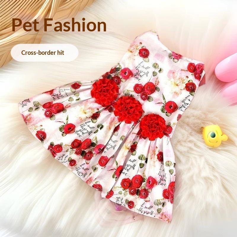Dog Dress Skirt Clothing Dress Red Rose Cherry Love Puppy Teddy Cat Sleeveless Dress Party Gathering Valentine's Day Dress Up — günstig online bei Joom kaufen