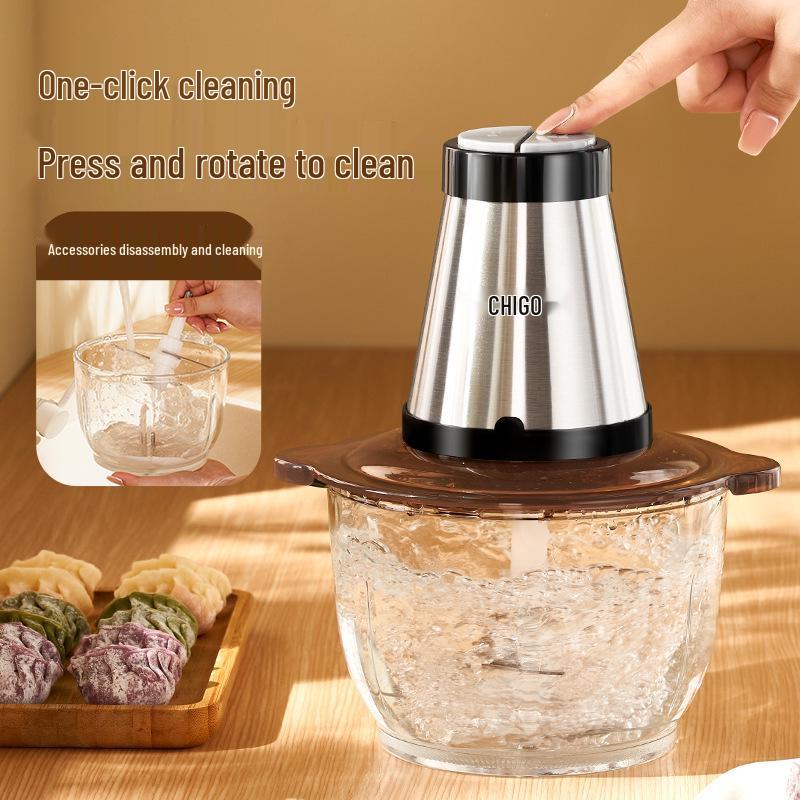 Electric Stainless Steel Meat Grinder for Minced Meat, Vegetables, Garlic, and Chili - Compact Kitchen Appliance