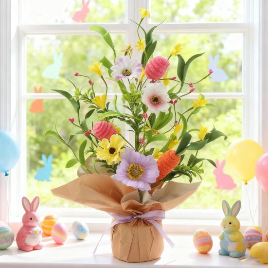 Verziert mit bunten künstlichen Eiern und traditionellen Oster-Elementen, wertet diese exquisite Tischdekoration sofort die Atmosphäre jedes Raumes auf.. Ideal für Gästezimmer, Büros, Klassenzimmer oder als durchdachte Geschenke für Frauen und Kinder, bringt es Wärme und Freude zu Partys, Hochzeiten und saisonalen Feiern.