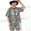 67 Gradient Zebra Color Printed Kids T-shirt and Shorts 2 Piece Set Summer Casual Outfit for Boy's and Girl's Kids Clothing Top