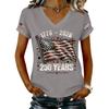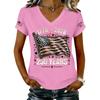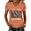 Modisches Damen-T-Shirt mit V-Ausschnitt, lässig, im Retro-Print, kurzärmelig