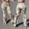 Neue Damen Herbst Tie-Dye Ausgefranste Jeans, Distressed Design Boho Streetwear Lässige Denim-Hose mit Fransen-Saum, Künstlerische Baggy-Hose