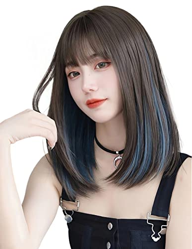 Limakara Wig, Medium Straight, Inner Color, Natural-Looking Wig, Full Wig, Semi-Long, Layered, Women's Wig with Net (Brown or Blue) — günstig online bei Joom kaufen