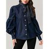2025 Trendy Women's European Style Denim Shirt with Lace-Up Bow Tie — günstig online bei Joom kaufen