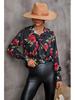 Europäischer & Amerikanischer Stil Damen Herbst Print Krawatte Einreihig Langarm Hemd
