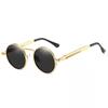 New Vintage Round Steampunk Sunglasses for Men Women Retro Metal Spring Leg Sun Glasses