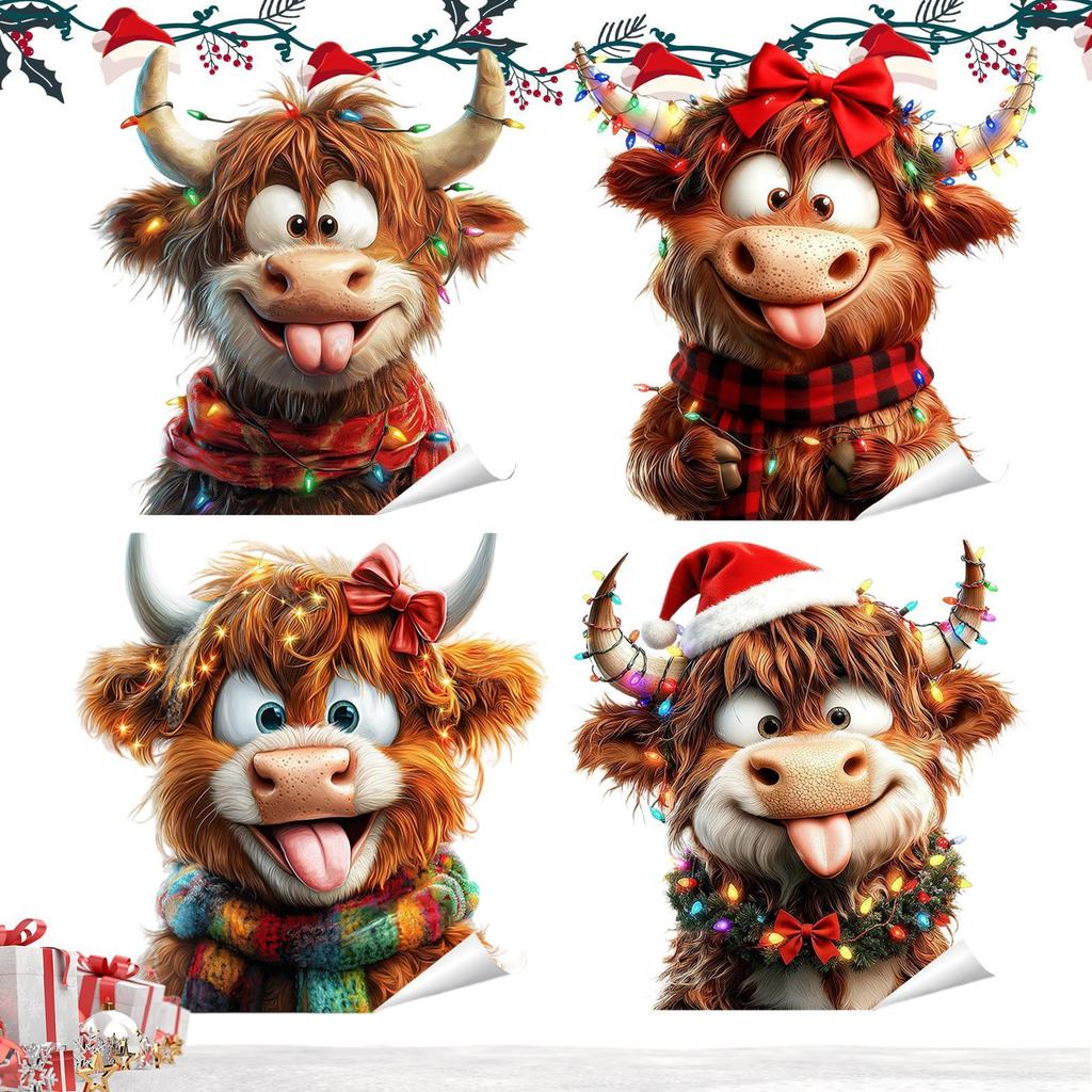 4pcs Christmas Window Decals Cute Highland Cow Static Transparent Glass Stickers Electrostatic Adhesion Glass Door Holiday Decal — günstig online bei Joom kaufen