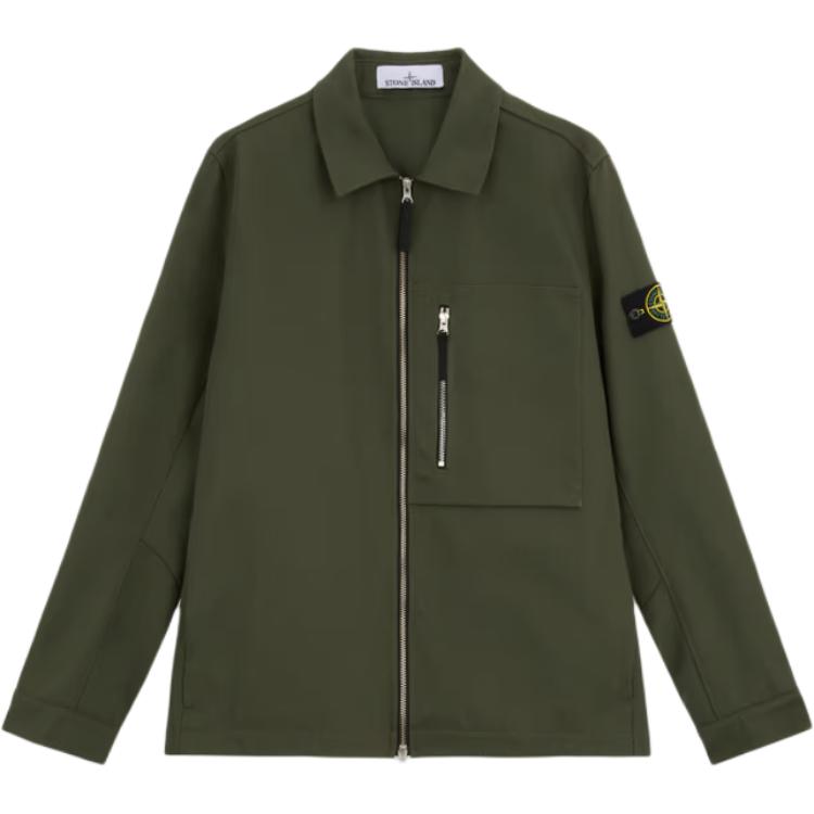 Stone Island Solid Color Badge Chest Pocket Zip Collar Long Sleeve Jacket Men Jacket Green 811511103-V0059