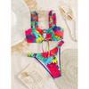 Sexy Tie Dye Flower Print Bikini Set Women Drawstring Pleate Push Up Bra Thong Swimsuit Bathing Suit Swimwear