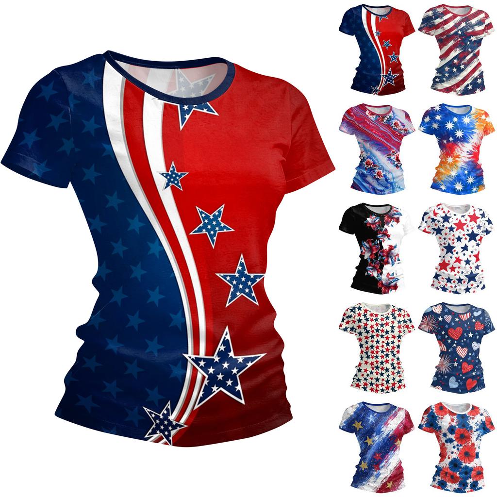 Damenmode Rundhals Unabhängigkeitstag Druck Kurzarm Locker Rundhals T-Shirt Top — günstig online bei Joom kaufen