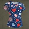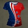 Damenmode Rundhals Unabhängigkeitstag Druck Kurzarm Locker Rundhals T-Shirt Top