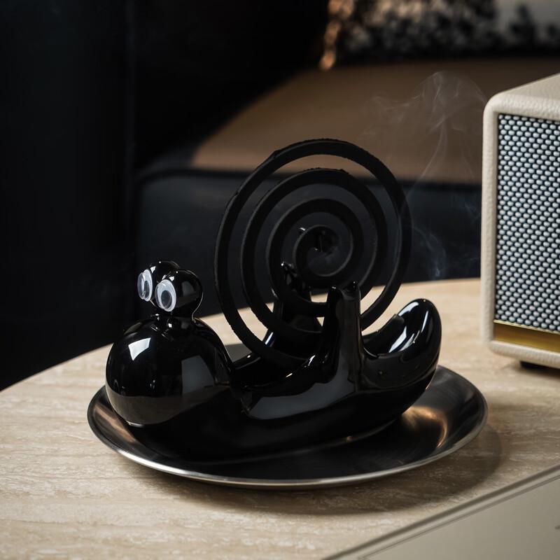 ZISIZ Ceramic Snail Mosquito Coil Holder with Ash Tray
