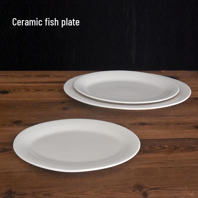 Pure White Ceramic Oval Fish Plate - 14/16/18 Inch - Ideal for Steamed Fish, Vegetables - Perfect for Home, Hotel, or Restaurant Use — günstig online bei Joom kaufen