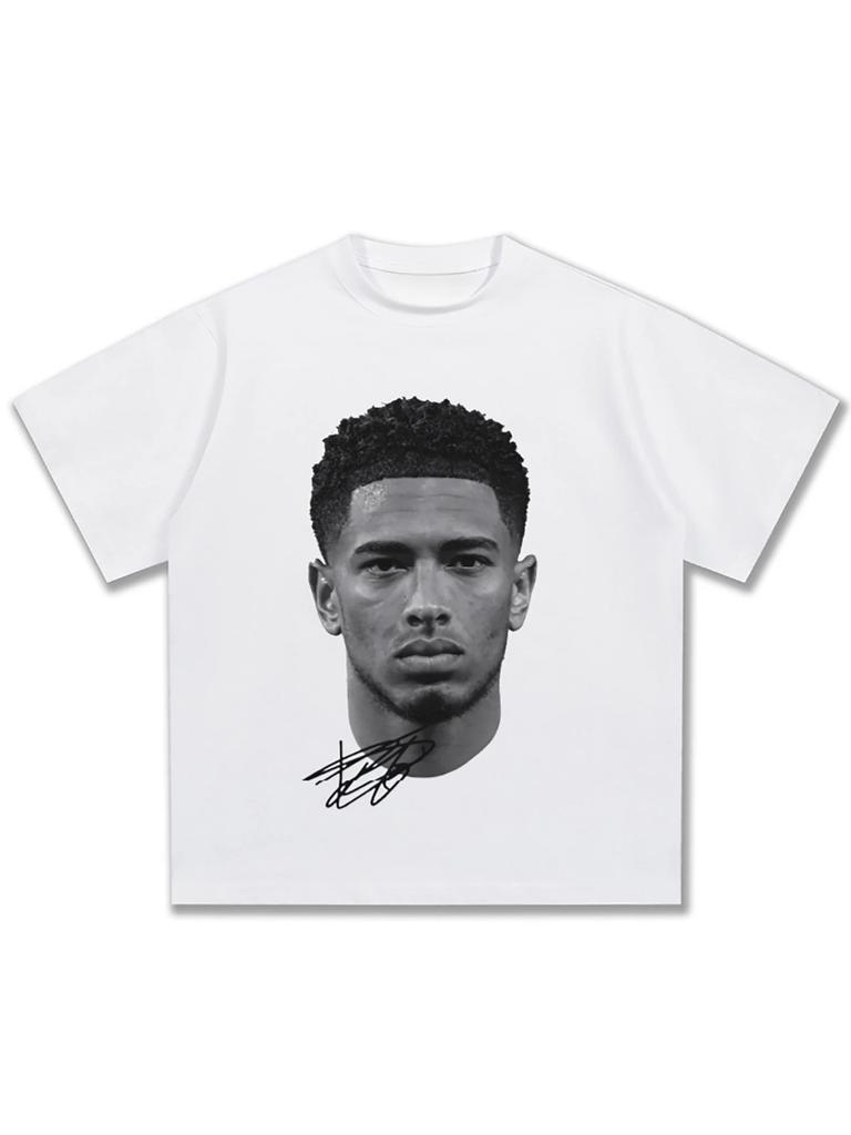 Jude Bellingham Portrait Signature T-Shirt, Unisex Real Madrid Football Star Streetwear Tee, 100% Cotton Oversized Casual Top — günstig online bei Joom kaufen