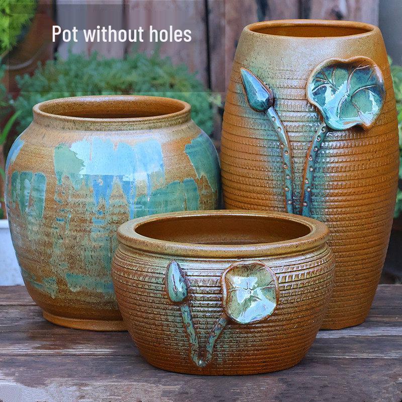 Large Retro Hydroponic Ceramic Vase - Tall Handmade Pennywort Cylinder Pot