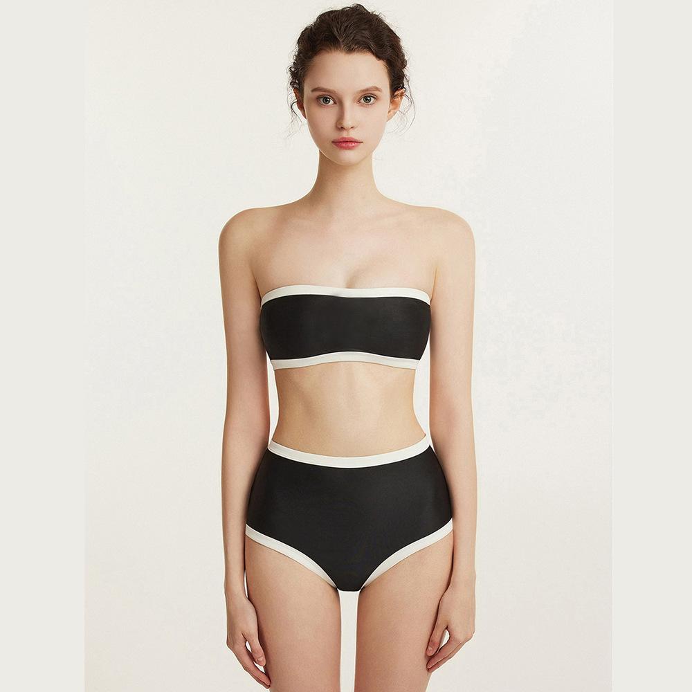 Schicker zweiteiliger trägerloser Push-Up Badeanzug: Schwarz-Weiß-Farbblock, Hoher Bund, Schlankmachend, Bereit für den Urlaub. — günstig online bei Joom kaufen