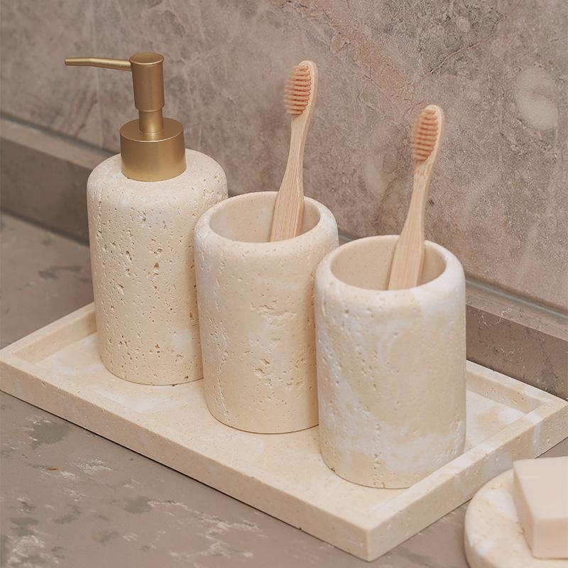 Travertin Seifenspender Seifenschale Mundspülbecher Tablett Abtropfschale Handdesinfektionsflasche Lotionflasche Badezimmer Waschen Set — günstig online bei Joom kaufen