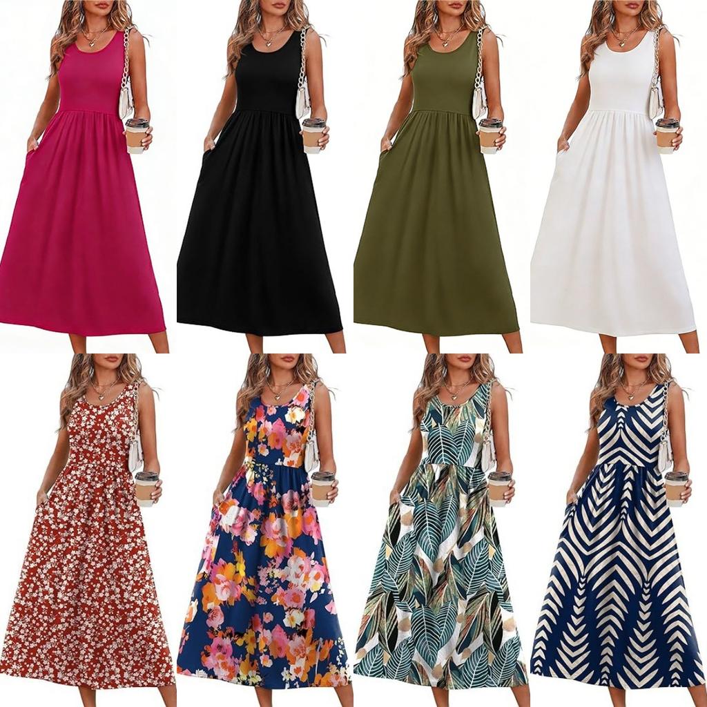 Women's clothing summer European and American neck printing pendulum sleeveless vest pocket dress — günstig online bei Joom kaufen