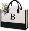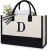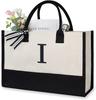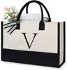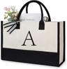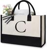 Große Tragetasche, modische Canvas-Tasche mit Buchstaben und Blumen, tragbar, für den Strand, Schultertasche, Shopping, lässige Strandtasche, Handtasche