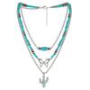 Sommer Perlen Mehrschichtig Türkis Halskette Ethnischer Stil Kaktus Strand Choker Anhänger Retro Westlich Land Halskette Geschenk