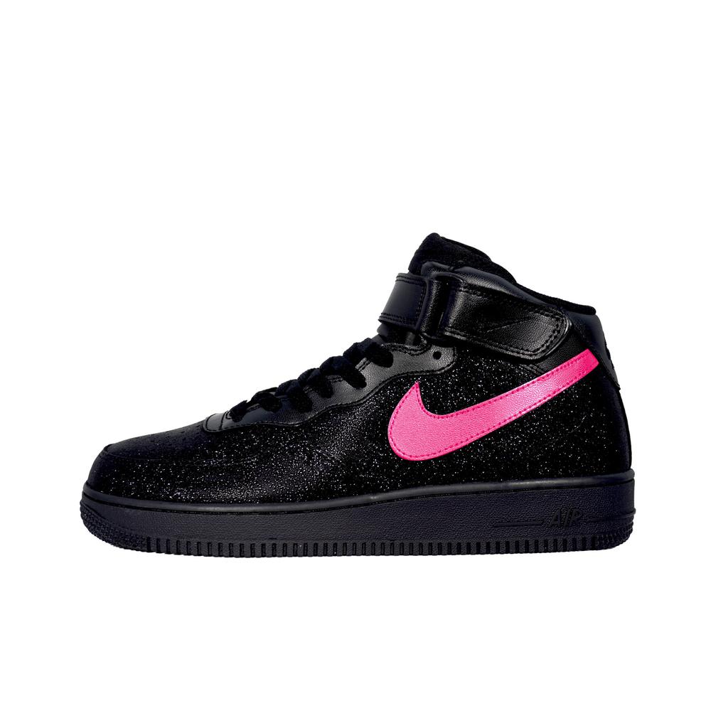 Nike Air Force 1 Breathable Height Increasing Mid top Skateboard Shoes Unisex Black Pink CW2289-001(Team133-mid)
