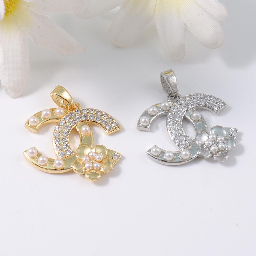 Eleganter Retro-Stil Zirkonia & Perlen Anhänger mit Doppel C Design