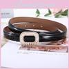 This fashion-forward women's leather belt features a smooth alloy buckle and is crafted from durable double-layer leather, it offers a versatile accessory for various outfits. Ideal for office wear or casual occasions, it complements dresses and skirts with elegant pearl and water-diamond embellishments. Easy to maintain, wipe clean with a damp cloth for long-lasting style.