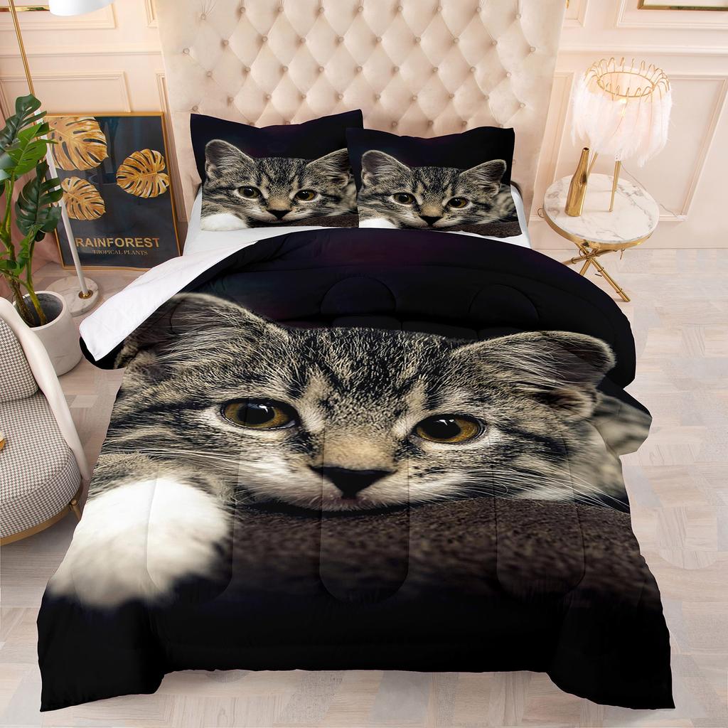 Comforter Cute Kitten Luxury Theme Home Comforter Winter Quilted Blanket Goose Down Duvet King Queen 3D Blanket Size Twin