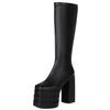 Schwarze Kniehohe Stiefel Damen Plateau Sexy Gothic Punk Absätze Damen Winter Oberschenkelhohe Stiefel Fetisch Partyschuhe Damen Große Größe