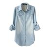 Damen Hemdmantel Revers Langarm Loose Fit Mittellanges Jeanshemd Basic Pendlerstil Oberbekleidung mit Taschen — günstig online bei Joom kaufen