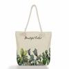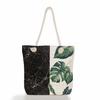 Marble green leaves print thick rope single-shoulder beach bag 7273 CLE