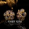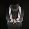 Gebrauchtes lila Schmuckset mit Pfirsichblüten-Motiv, zweilagig: Halskette und Ohrstecker aus 925er Silber im exquisiten Hofstil.