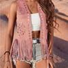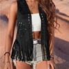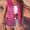 Damen Frühling/Sommer Ärmelloser Cardigan mit Fransen, Unifarbene Punk-Jacke