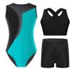 Ärmelloses Tanzset für Mädchen Glitzernde Strasssteine Kontrastfarben Gymnastik-Leotard mit Shorts und Top — günstig online bei Joom kaufen