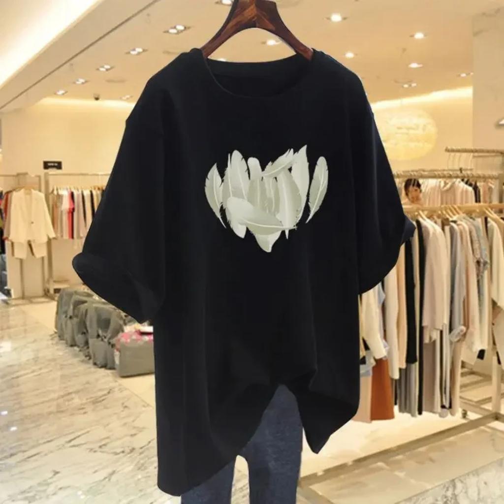 Liebes Feder Reines Baumwoll-T-Shirt Sommer Damen Oberteil Kurzarm Lässig Einfach All-Match Basic Pullover — günstig online bei Joom kaufen