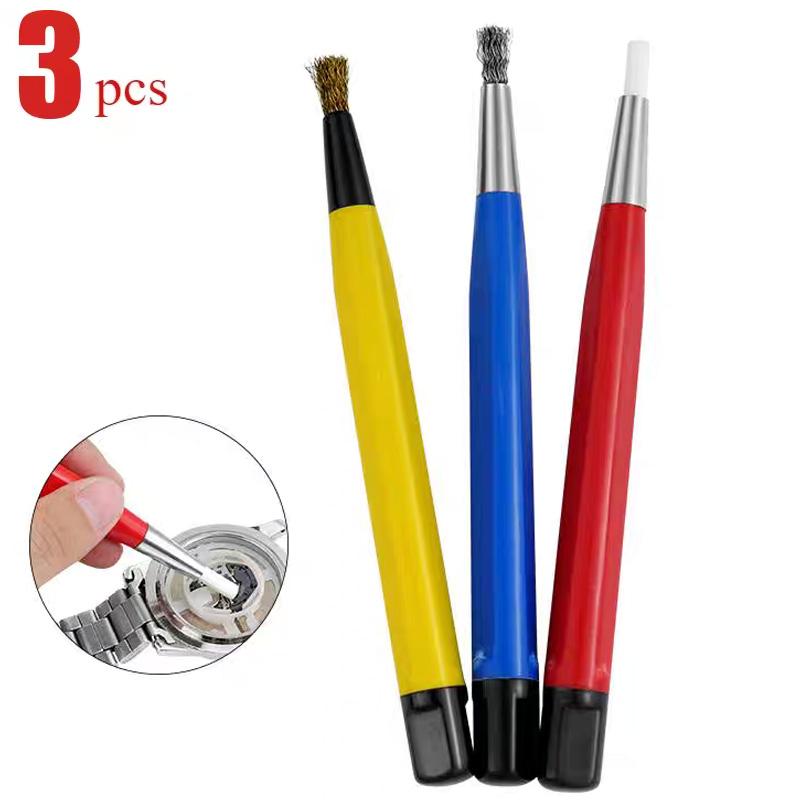 3 Stück/Set Rostentferner Pinselstift Glasfaser / Messing / Stahl / Nylon Pinselstiftform Uhrenteile Polier-Reinigungswerkzeug