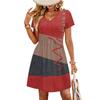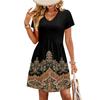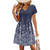 Modisches Damenkleid mit Print, V-Ausschnitt, kurzärmelig, locker, lässig, für den Strandurlaub