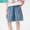Little Yinman Girls' Cherry Embroidered Denim Bermuda Shorts