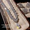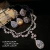 Italian Retro Wheat Ear Water Drop Gem Necklace, Sparkling, Bright Petal Zircon Bracelet, Set