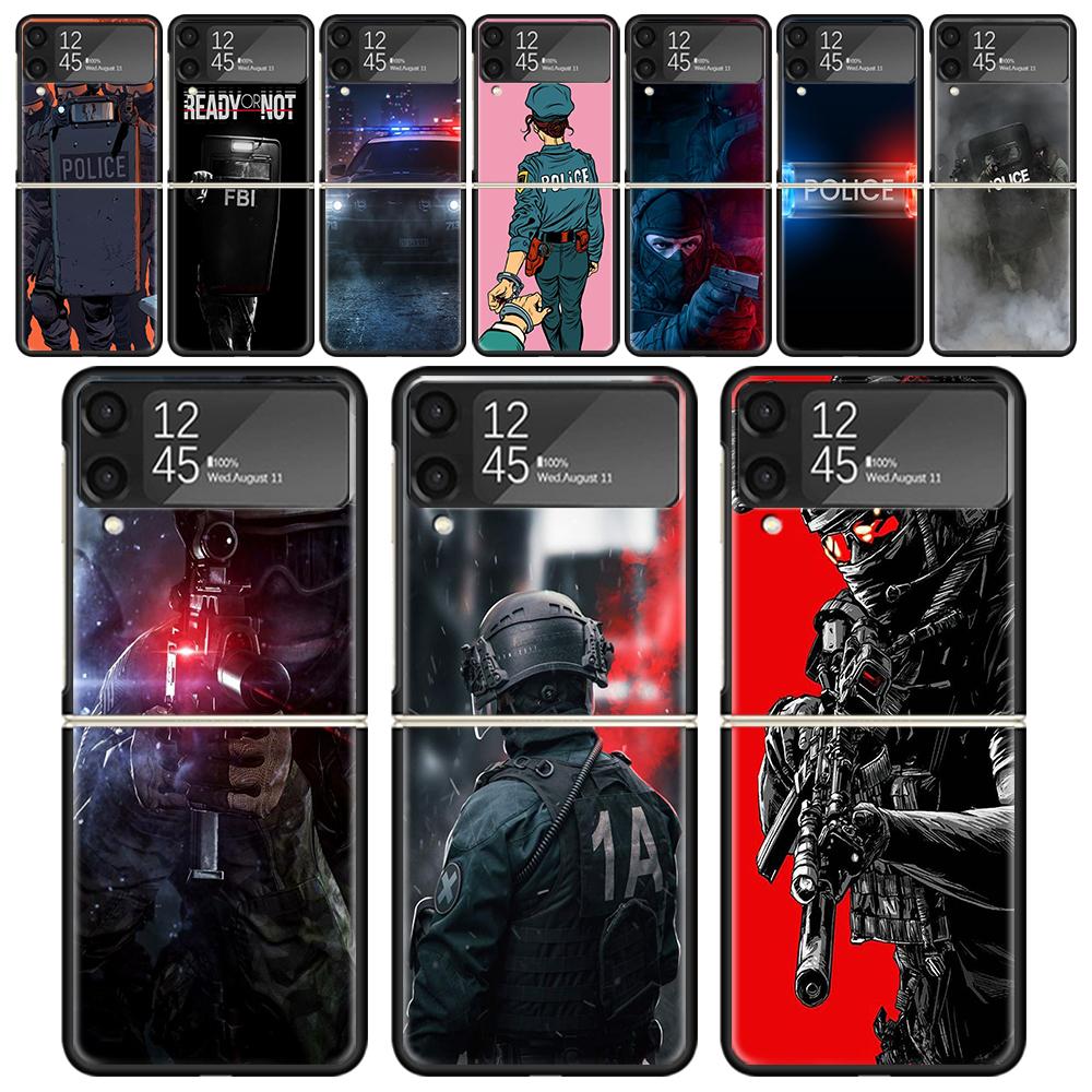 Police SWAT FBI Cases For Samsung Galaxy Z Flip 4 5 6 7 3 Z Flip7 Flip6 Flip4 Flip5 Flip3 5G Hard Shockproof Fundas Cover Galaxy