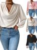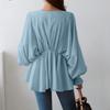 Simple V-Neck Drawstring Scarf Irregular Autumn Women's Shirt Loose Design Casual Long Sleeve Shirt Women's Fashion — günstig online bei Joom kaufen