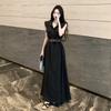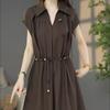 Dieses elegante schwarze ärmellose Kleid ist so gestaltet, dass es Eleganz und Stil ausstrahlt.. Es verfügt über einen klassischen Hemdkragen, der einen Hauch von Formalität verleiht, was es perfekt für verschiedene Anlässe macht.. Das schlankmachende Taillendesign betont Ihre Silhouette und sorgt für eine schmeichelhafte Passform.. Hergestellt aus glattem Stretch-Polyester, bietet dieses Kleid sowohl Komfort als auch Flexibilität und gewährleistet Bewegungsfreiheit.. Umarme zeitlose Mode mit diesem vielseitigen Stück, ideal sowohl für den Tag als auch für den Abend.