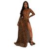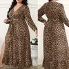 Women's Sexy Leopard Print Long Sleeve Split Dress