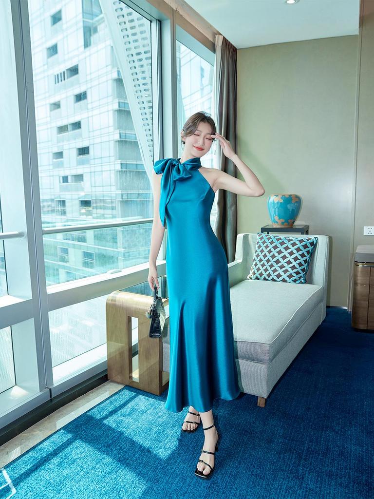 Elegantes französisches Acetatsilber-Neckholder-Abendkleid: High-End Society-Schmal geschnittenes Kleid — günstig online bei Joom kaufen