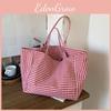 Large Checkered Canvas Tote Bag With Retro White Brown And Plaid Pink Design Street Style Chic — günstig online bei Joom kaufen
