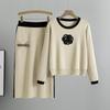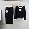 Damen Koreanisches Kamelien Strickwaren Set: Elegantes Rundhals-Oberteil & Bodycon-Rock Zweiteiler