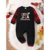 Foreign Trade Ins Newborn Baby Boys and Girls Letter Print Christmas Plaid Long-Sleeve Open-Crotch Romper